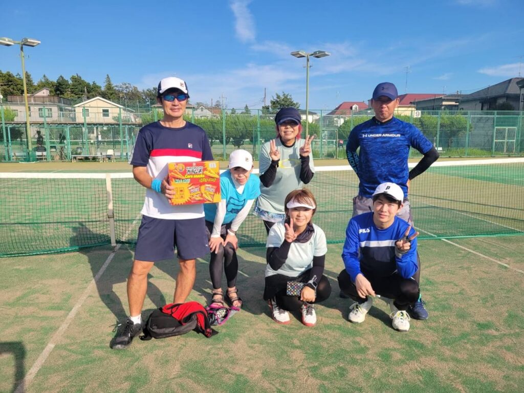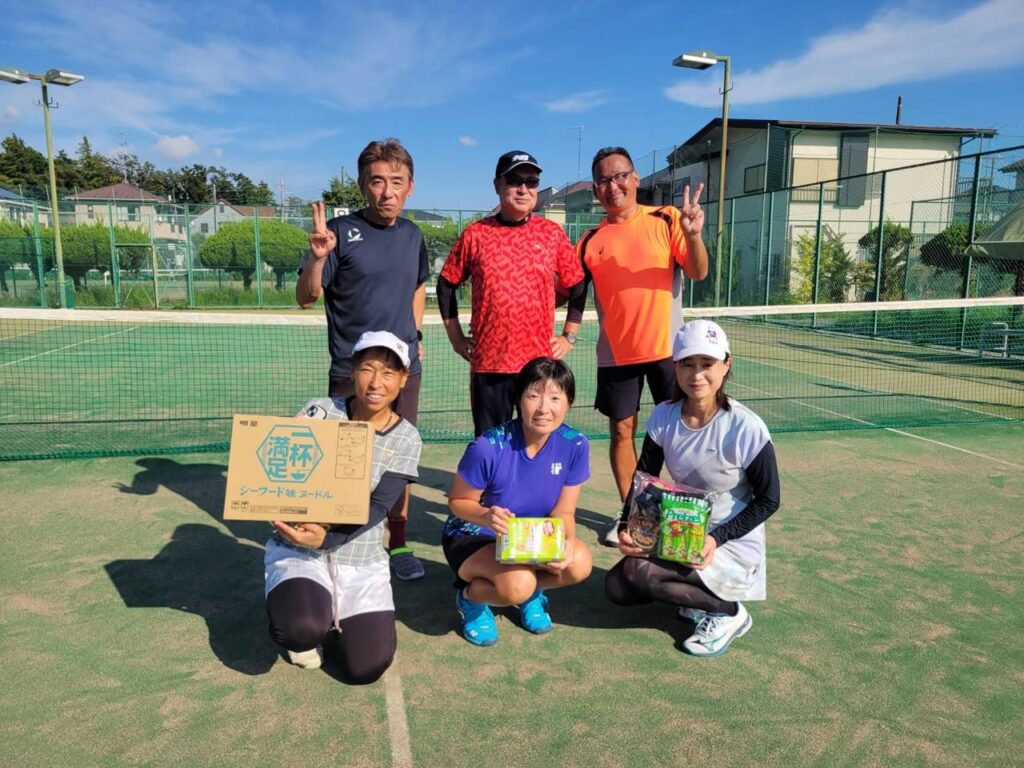 決勝戦は圧倒的なテニスの強さを見せた『かも池』さんが2勝で先に優勝は決めましたが、最後のMIX、3勝はさせないと粘りの『よっしー』さんもさすがでした![]()