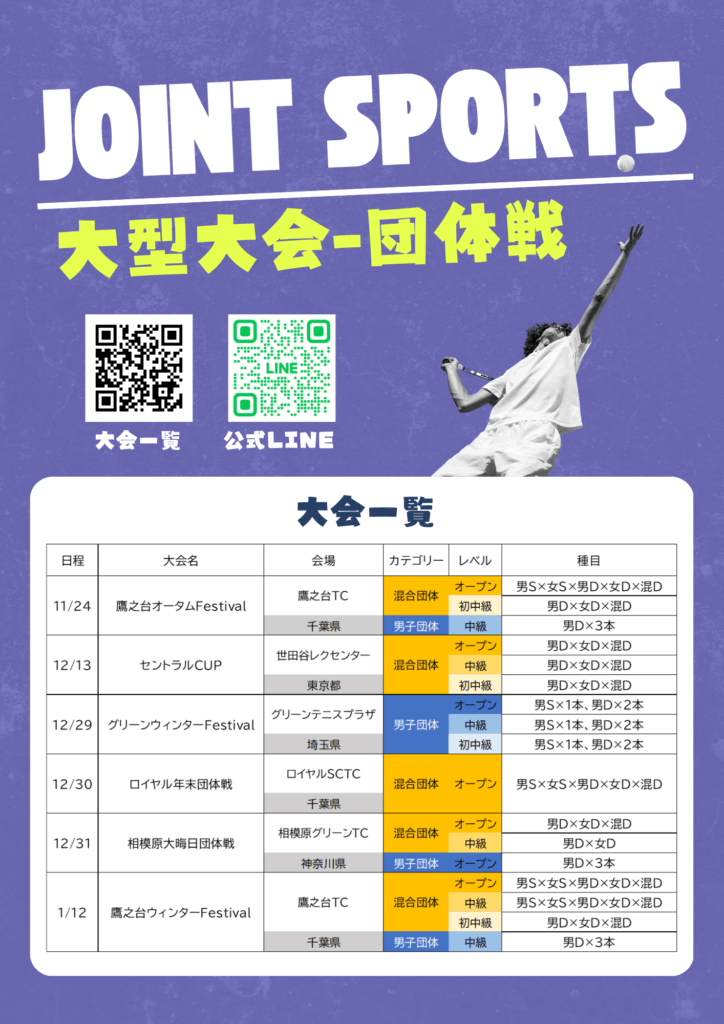 2025年11月〜2026年1月にかけて、Joint Sportsでは施設貸切でのイベントを数多く開催します!