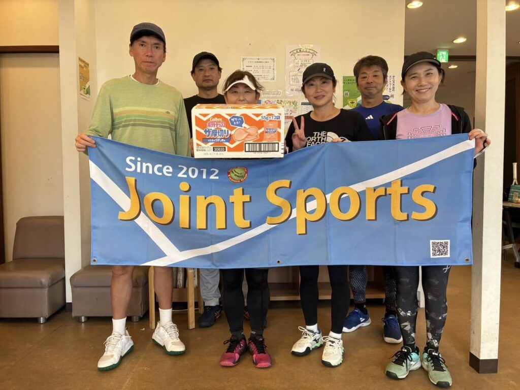 チームTシャツを作って臨んだ試合も、全試合2勝1敗のテニスでギリギリのところを駆け上がり、見事に優勝しました![]()
