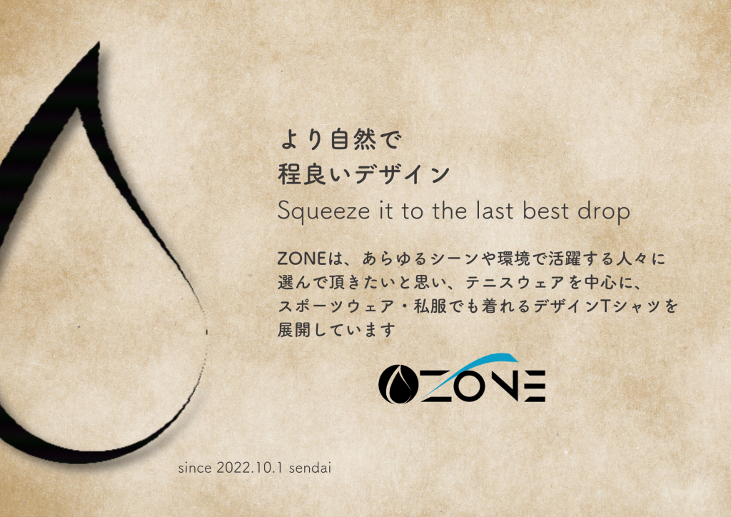 「ZONE」はあらゆるシーンや環境で活躍する人々に選んで頂きたいと思い、テニスウェアを中心に、スポーツウェア・私服でも着れるデザインTシャツを展開しています。